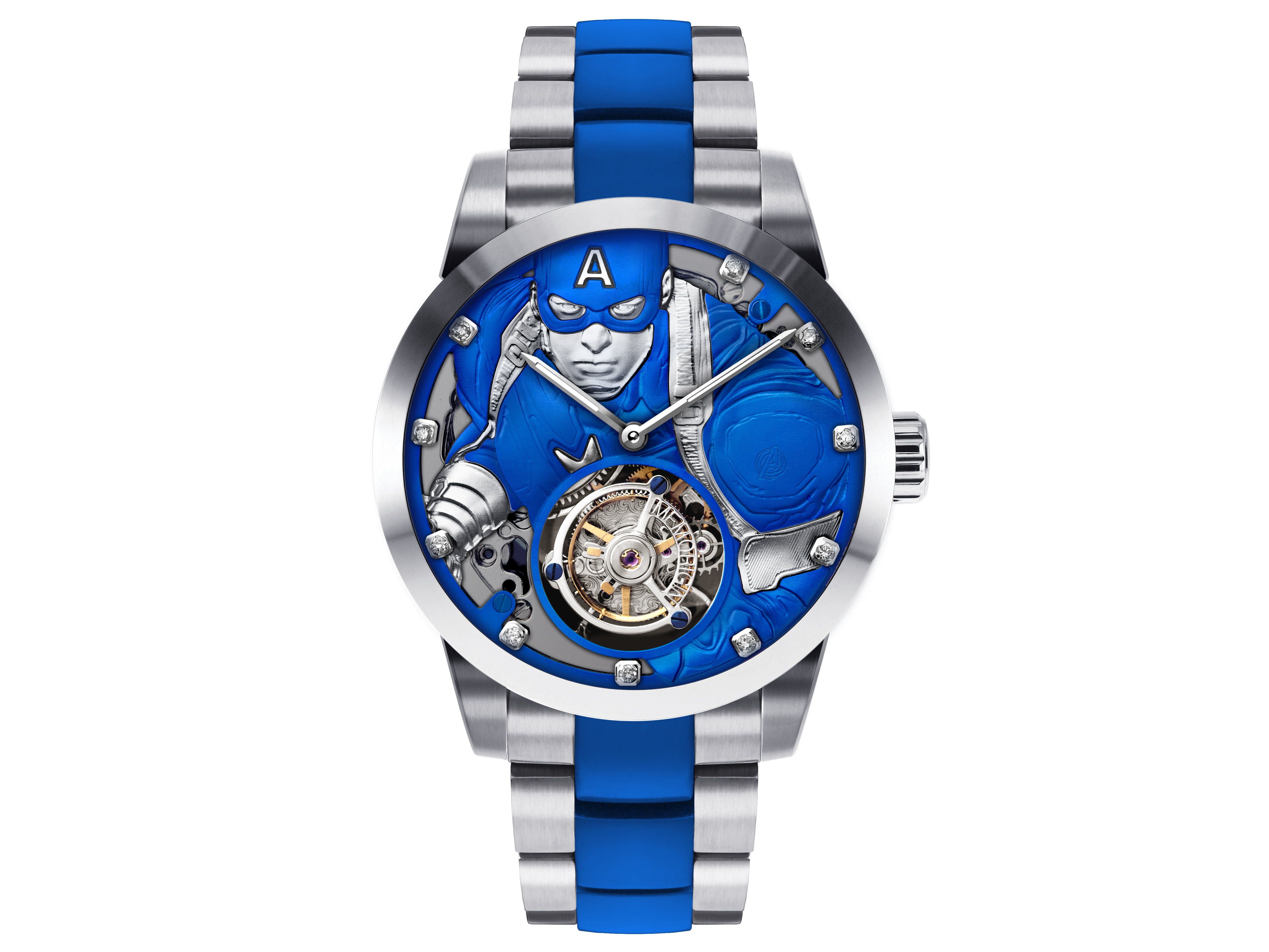 錶面鑲嵌10顆天然藍寶石作時間刻度