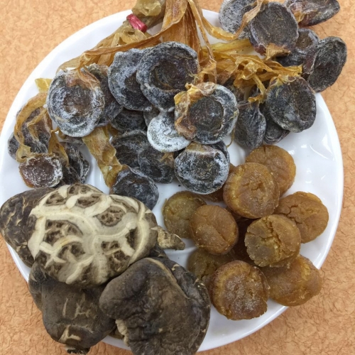 材料:明目魚幹50克,香菇6只,瑤柱50克.